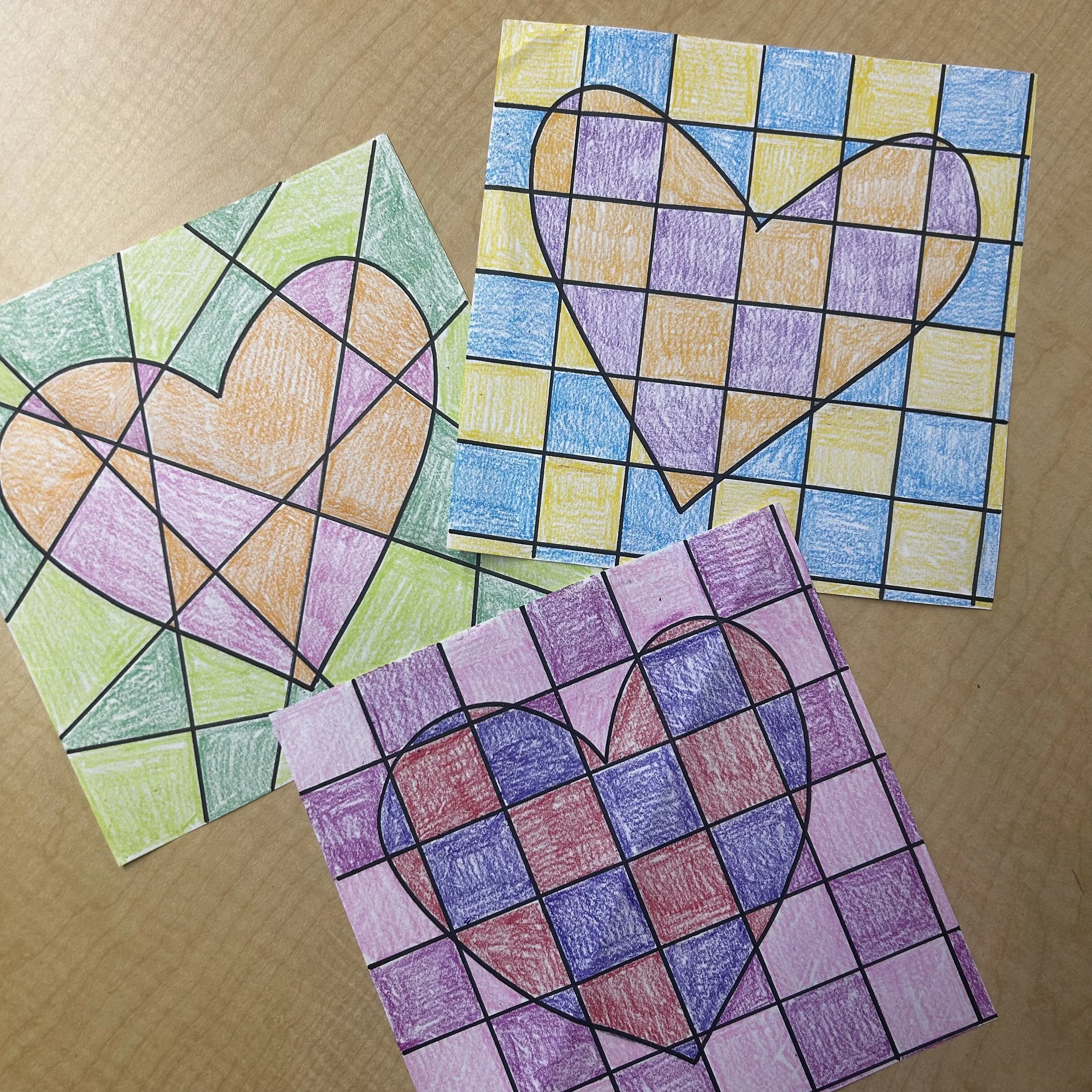 Choose 4 different colours: 2 for the heart and 2 for the background.