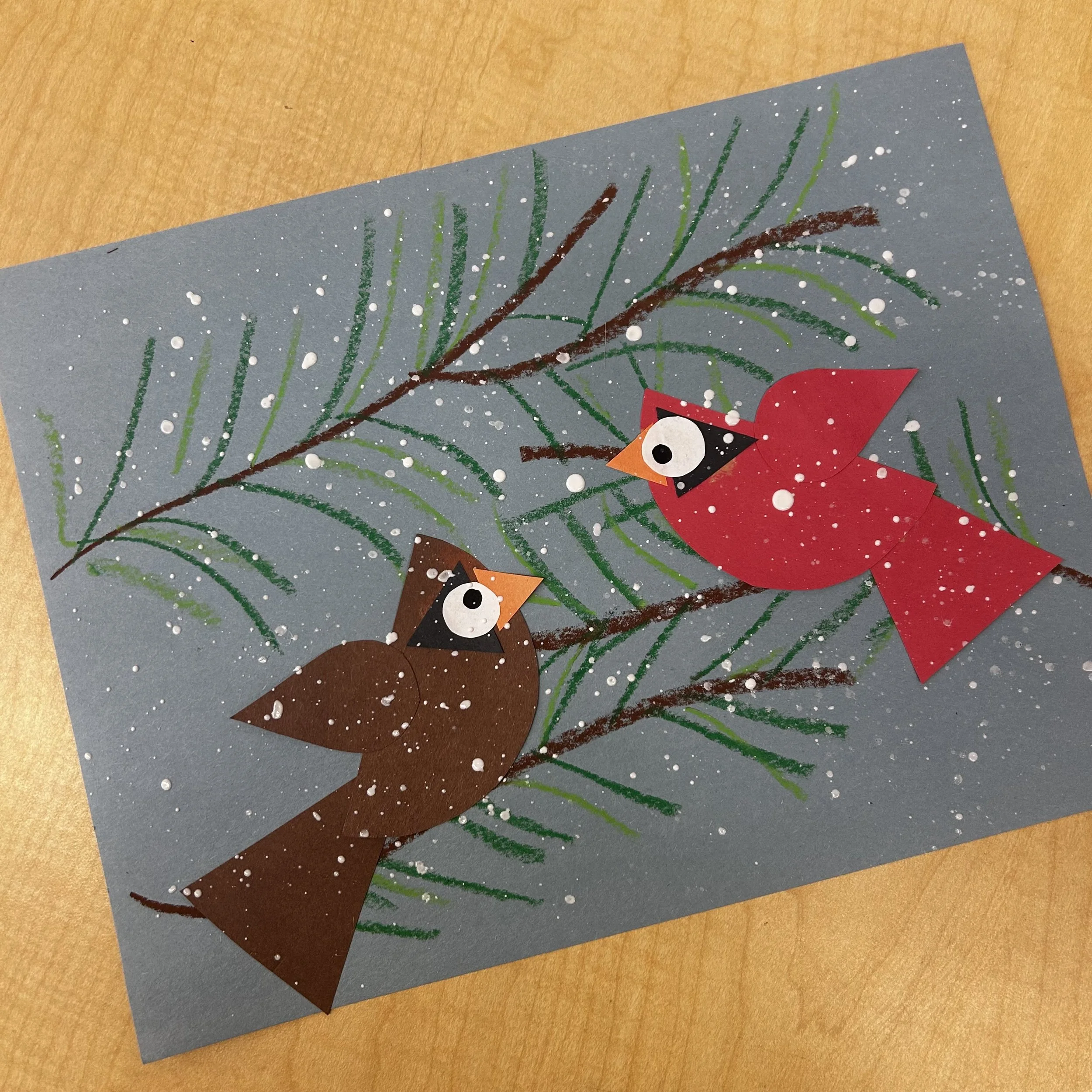 In case you didn’t know, female cardinals aren’t bright red, they’re more of a tan/brownish colour. You can have them make one of each or students could choose which cardinals they’d like to make.