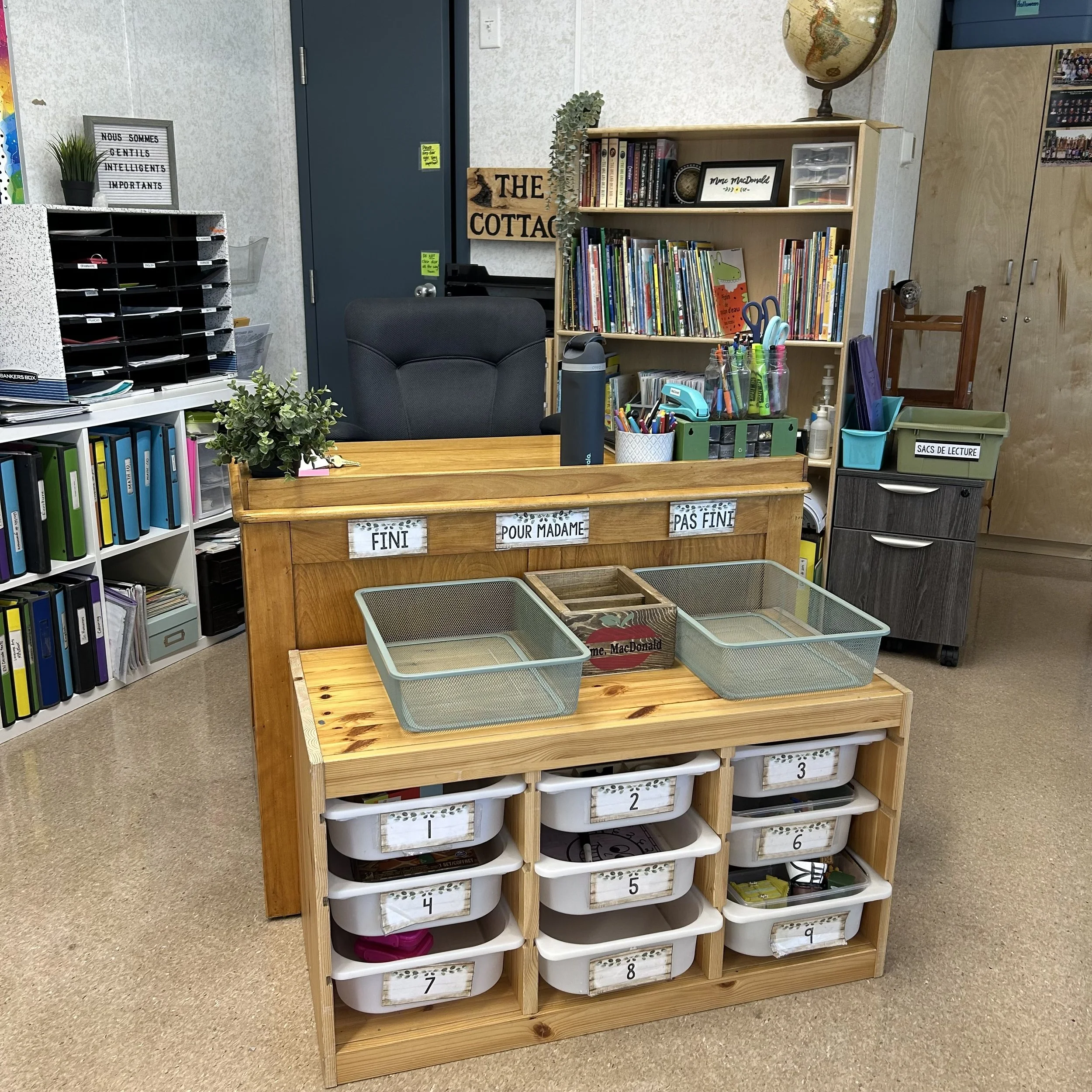 In between those two bins is a little basket called “Pour Madame” which is where students put any notes, forms, notices, money etc. that came from home.